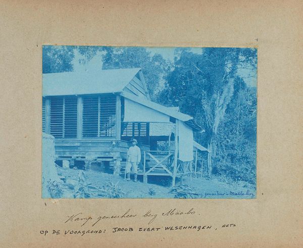 This is an anonymous photograph, documenting the Opzichterswoning and bridge construction at Wittewaterkreek. It's monochromatic, and the image is soft, with a limited tonal range, so we're getting this distilled record of the scene. Looking closely, the way the sunlight hits the simple wooden house, you notice the textures of the trees, and the reflection of light on the water. The contrast between light and shadow creates this feeling of depth. The eye moves around the photograph, taking in the overall composition, but it also stops at these smaller details. It’s a reminder that art is also a kind of record-keeping, bearing witness, even when the maker remains unknown. Think of Bernd and Hilla Becher and their typologies of industrial buildings, or some of the New Topographics photographers. Like them, this work shows us something about the world, a way of seeing it.