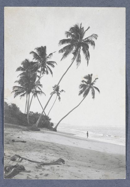 Editor: Bill Dane’s "Untitled (Costa Rica)" is a black and white photograph of a beach. The textures of the sand and foliage are striking. What’s your take on this piece? Curator: The means of production interest me. The material constraints of black and white photography at the time, the social context of Costa Rica, and Dane’s labor in capturing this image. Were these materials readily available or did they reflect a certain kind of commodity chain? Editor: That’s a perspective I hadn't considered. It prompts so many questions about value and access. Curator: Precisely. And how the image itself becomes a commodity, consumed and circulated. Editor: I am definitely walking away with a different perspective on photography.