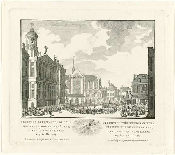 Carel Frederik Bendorp produced this print of two cityscapes in Amsterdam sometime between 1750 and 1814. The Dutch Republic in the 18th century was a society steeped in complex hierarchies of class and cultural identity. The print features two theaters, the Nederduitse Academie and the Franse Schouwburg, reflecting the city’s cultural life and linguistic diversity. The presence of both a "Dutch" and a "French" theater points to the negotiation of local and international identities, where language was intrinsically linked to cultural status and accessibility. Who had access to these spaces? How did these theaters cater to different audiences? Look closely: the details in the cityscape, from the architecture to the figures populating the scenes, offer insights into the daily lives and social interactions of Amsterdam’s residents. It's a poignant snapshot of a society navigating its own internal cultural landscape.