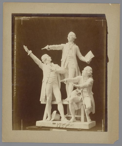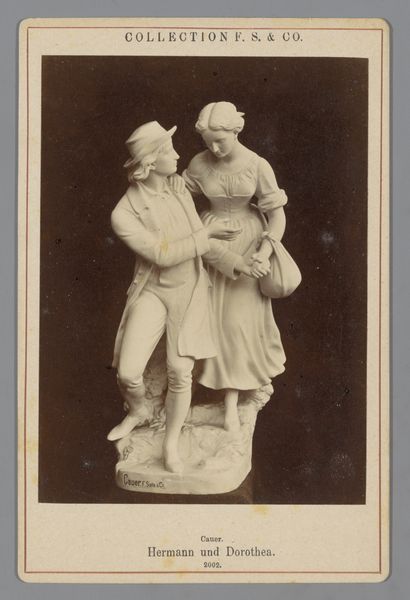 This card photograph presents a sculpted scene, likely made of plaster or a similar composite material. The duplication of the image would have created a stereoscopic effect, giving the scene a three-dimensional appearance when viewed through a special device. Consider the context: the original sculpture may have been carved from marble by a highly skilled artisan. But the multiplication of the photograph transformed the artwork into something affordable. This process democratizes art, making idealized scenes like this accessible to a broader audience. The image evokes questions of labor, skill, and reproduction. The photographic technique itself demanded chemical expertise and careful attention to light and composition, but the finished product entered a marketplace driven by consumption. Ultimately, appreciating this image requires understanding how materials, making, and modes of production affect the very meaning of art.