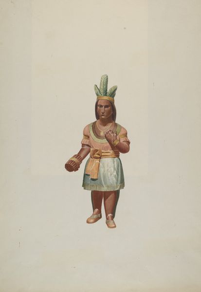 Einar Heiberg, born in Norway, made this watercolor called ‘Cigar Store Indian.’ From the mid-19th to mid-20th century, these figures stood outside tobacconists in the United States, advertising the sale of tobacco products. The irony of these figures is biting. They stand as emblems of a romanticized, yet entirely fictitious Indian. Consider the historical context: these statues proliferated during a period of intense displacement, oppression, and cultural erasure of Indigenous peoples. The ‘Cigar Store Indian’ becomes a symbol of cultural appropriation, reflecting a complex interplay of commerce, representation, and colonial power. They perpetuated harmful stereotypes while simultaneously appropriating Indigenous imagery for commercial gain. They embody the complexities of cultural exchange, exploitation, and the power dynamics inherent in representation.