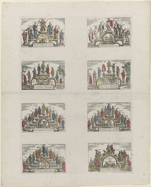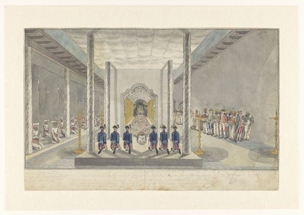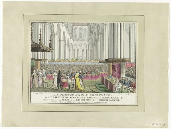 This small print depicts the inauguration of King Willem II. The dominant symbols are, of course, those of royalty and state. The color palette itself—red, white, and blue—echoes national identity, a concept as powerful today as it was then. We see these colors not only in the flags but also in the decorative garlands, recurring motifs that speak to unity and celebration. These arrangements recall ancient Roman triumphal arches, structures designed to celebrate military victory and imperial power. Note how such displays evoke collective emotions—pride, loyalty, and a sense of shared identity. The visual cues activate a communal memory, a feeling of belonging that extends through generations. Even the architecture, with its imposing columns and arches, reinforces the grandeur and permanence of the state. Such imagery serves not only to document an event but also to instill a sense of awe and respect, perpetuating the symbolic power of the monarchy. Through such cyclical patterns, history continually rewrites itself, each iteration adding layers to our collective understanding.