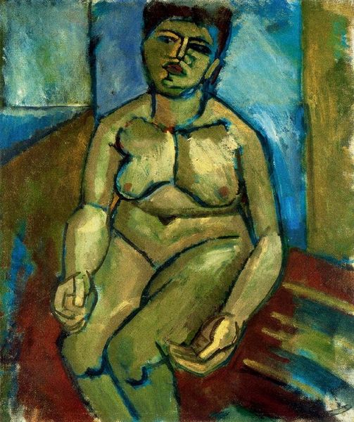 Henri Matisse made 'The Blue Nude' in 1907 using oil on canvas. The strokes feel so intuitive, like he's letting the process guide him. You can see the marks of his brush dancing across the surface, especially in the way he models the figure. Looking at the body, the paint is laid on in these transparent washes, but then he comes back with thicker, opaque strokes to define the contours. See how the blues and greens around her melt into the background, creating this dreamlike space? I'm really drawn to how the red of her nipple stands out against the cool blues of her torso. It's like a little spark of energy. Matisse was clearly looking at Cezanne, especially his bathers, but he's pushing the boundaries even further here, experimenting with colour and form in a way that feels totally new. It just goes to show that art is always building on what came before. It's an ongoing conversation.
