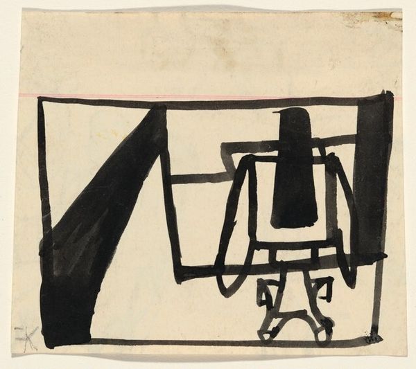 Editor: So, this is Franz Kline’s "Sketch of Kitzker" from around 1945 or 1946, created with ink on paper. I find the sharp contrast between the black ink and the white paper creates a striking sense of immediacy, but it’s also kind of jarring. What kind of emotional response was Kline perhaps trying to elicit? Curator: Look at how those stark black lines intersect and overlap, creating what feels like a network of visual tensions. Ink, especially in Asian calligraphic traditions, becomes an extension of the artist’s vital energy and spontaneous vision. The brushstrokes are not just lines; they're embodiments of movement, almost a dance, holding cultural memory in how energy meets stillness. Editor: A dance? I mostly see chaos. Curator: Perhaps. But what if that chaos mirrors a deeper emotional landscape? Kline made this sketch right after the Second World War, when social realities had shattered previous notions of beauty, so to speak. Consider, also, that abstraction offers the artist a space to probe the subconscious. Is there any hidden symbolic association for Kline personally in Kitzker that informs these broad brushstrokes, do you think? Editor: I guess it’s interesting to think that this seemingly chaotic composition could be filled with symbolic and emotional meaning rooted in Kline's experience and subconscious. I had just never thought of that! Curator: Exactly. That is the weight and wonder that abstracted lines might hold. They suggest a collective memory; their jagged edges point to emotional distress after the World Wars, don't you think? Editor: Absolutely. It's like the image captures a cultural shift and how trauma changed how art was being created.