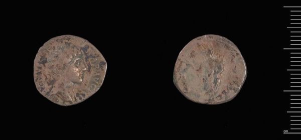 Editor: Here we have a coin of Cremna under Septimius Severus housed at the Harvard Art Museums. The weight is about 19 grams. Given its age, the surface is quite worn. What strikes you about the formal qualities of this piece? Curator: The coin presents itself as a compelling study in relief. Consider how the incuse portrait on the obverse dictates the viewer’s interaction. Notice also the marked degradation; the patinated surface reveals not only age but also the material’s inherent vulnerability. Editor: So, its imperfections contribute to its aesthetic value? Curator: Precisely. The wear serves as a visual index of its journey through time. The coin’s circular form, now slightly irregular, further underscores this tension between original design and entropic decay. Editor: Fascinating. It’s about seeing the composition, not just the subject. Curator: Indeed.
