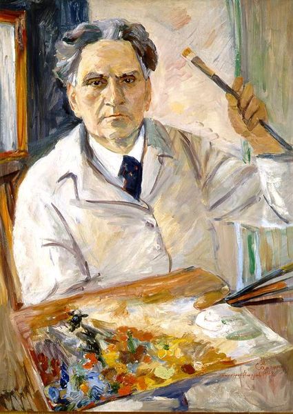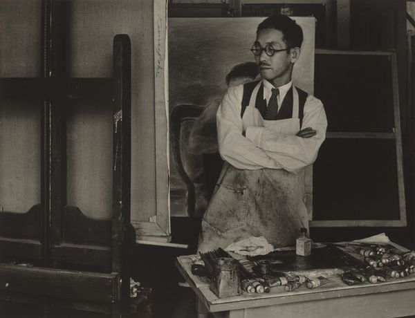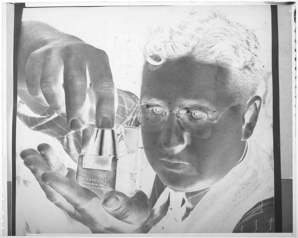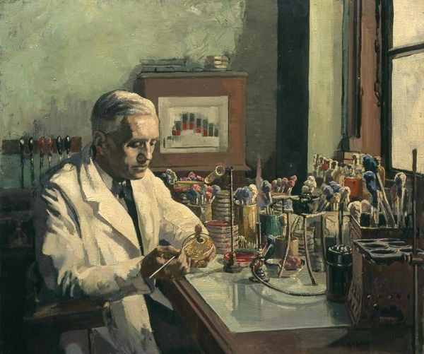 Editor: Joel Babb's portrait of David Galland Freiman presents the pathologist in his element. It seems like a straightforward depiction, but how do you interpret the significance of portraying a scientist in this formal manner? Curator: It prompts us to consider the representation of scientific authority, doesn't it? The white coat, the microscope – they are potent symbols of knowledge and power within our society. Whose knowledge is validated, and how? Editor: That's a really good point! It makes me think about how portraits often historically depicted the elite. Does this painting borrow from or challenge that tradition? Curator: Precisely! Consider who gets memorialized in art, whose contributions are deemed worthy. This portrait forces us to examine the relationship between scientific progress, social structures, and the very act of representation. Editor: This really makes me see the painting in a new light; it's more than just a portrait, it's a statement. Curator: Exactly, it is a reflection of our values and power structures.