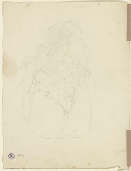 Curator: This sketch, by John Flaxman, from the Tate Collections, presents us with a series of individual figure studies on a single sheet. The support measures about 189 by 275 millimeters. Editor: There's a ghostliness to it, an ethereal quality evoked by the pale graphite on this thin paper. Curator: Indeed. Flaxman was working during a period of immense social upheaval, and his art often explored themes of justice and human struggle. How might these figures connect to those themes? Editor: Perhaps they are studies for larger works. The interlocking forms seem to be working through gesture and the mechanics of the body in space. The eye is led around the page following those contours. Curator: Considering Flaxman’s abolitionist stance, could we interpret this grouping as a commentary on collective resistance, where individual figures unite? Editor: I see the potential. Though I am hesitant to impose too much given their unfinished state. Curator: Of course, it remains open to interpretation. These sketches, in their rawness, offer us a glimpse into Flaxman’s process and the social conscience informing his work. Editor: Exactly. Seeing the skeleton of his process gives us new insight to his overall practice.