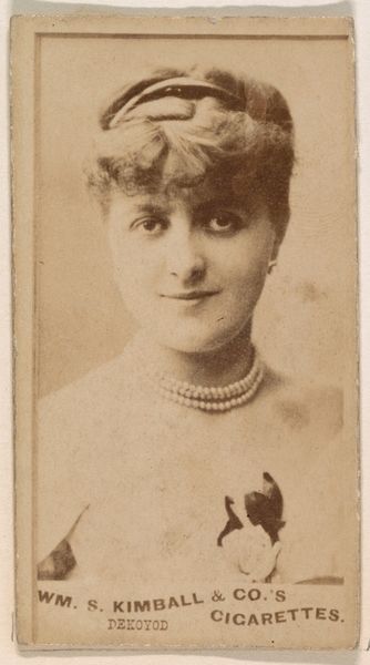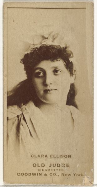This small card was produced by Allen & Ginter for Virginia Brights Cigarettes. It depicts a portrait of an actress, her gaze directed upward. This motif of upward-looking eyes has a rich history across various cultures and time periods. We find it in religious art, where figures look towards the heavens, seeking divine inspiration, a symbol connecting the earthly to the celestial. Think of countless depictions of saints and madonnas. The gesture conveys a sense of hope and aspiration and suggests a connection to something beyond the mundane, a psychological yearning. The actress presented here is not a saint, but a performer. Does she look for inspiration? Or is she waiting for her queue? This same gesture appears in modern advertising, where it subtly influences the viewer to look beyond their current reality toward the promise of a better future. It is the same symbol, yet one that has been reborn in a new context.