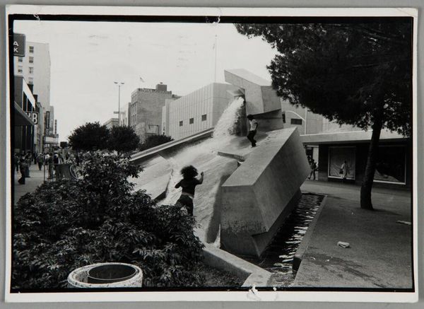 Curator: Bill Dane's "Untitled (Costa Rica)" captures a scene within what appears to be a primate enclosure. Editor: The strong geometric forms immediately strike me. The stark black and white contrast emphasizes the cage-like structure. Curator: The image resonates with the broader discourse surrounding animal captivity. The contained environment prompts reflection on themes of freedom and control. Editor: Absolutely. The composition, with its strong verticals and horizontals, creates a sense of confinement. The light and shadow play almost sculpts the space. Curator: Indeed. One can't ignore the socio-political dimensions of such spaces, examining the gaze and the ethics embedded within our interactions with the natural world. Editor: Perhaps, but the image, purely in its formal arrangement, presents a visual puzzle. The lines and forms create an almost abstract space despite the subject matter. Curator: Ultimately, this photograph invites us to consider the complex relationship between humans, animals, and the environments we create. Editor: Yes, and it's visually compelling in its austerity, the starkness prompting an almost existential meditation.