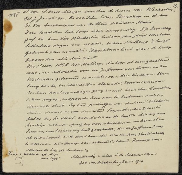Curator: So, this piece is entitled 'Transcripties van (delen van) brieven aan mevrouw Artz en aan Friedrich Gustav Julius Süs' by Pieter Haverkorn van Rijsewijk, created after 1905. It appears to be a mixed-media work incorporating drawing, textile, paper, and ink with elements of calligraphy. What’s your initial impression? Editor: It strikes me as very intimate and personal, almost like peering into a private journal. The script is lovely but difficult to read, creating a sense of mystery. What do you see in this work? Curator: I see a complex dialogue between public and private spheres, questioning societal structures through personal correspondence. The choice of mixed media and calligraphy is quite deliberate, perhaps intended to subvert traditional artistic hierarchies, interweaving domestic craft with fine art. It hints at the political dynamics inherent in everyday communication. Editor: How so? The text looks almost like stream-of-consciousness writing. Curator: Precisely! By transcribing personal letters and combining them with artistic techniques, Haverkorn van Rijsewijk blurs the line between personal expression and political commentary. It implicitly challenges the traditional, often male-dominated, art world by elevating overlooked forms of communication traditionally associated with women. What impact do you think that has on the interpretation? Editor: That’s interesting; it recontextualizes personal experience as a form of resistance. By emphasizing the private voice, is the artist perhaps highlighting the importance of marginalized perspectives within the broader cultural conversation? Curator: Exactly. The materiality of the piece, particularly the incorporation of textile, furthers that argument by nodding to domestic labour and "feminine" crafts, effectively positioning them as valuable forms of artistic expression and socio-political commentary. Editor: This has broadened my perspective; I hadn’t initially considered how deeply this piece engages with issues of gender and societal norms. Curator: Indeed. Art often holds up a mirror to society, inviting us to question the power dynamics that shape our world.