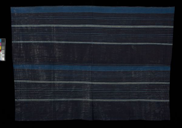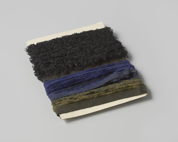 This is a length of black silk gauze ribbon with woven horizontal lines by Gustav Schnitzler. Notice how the horizontal lines create a visual rhythm, dividing the fabric into distinct bands. The interplay between the sheer gauze and the solid lines introduces a tension between opacity and transparency, flatness and depth. These aren't simply decorative; they structure our perception, guiding the eye across the surface. Consider the texture and materiality. The silk gauze has a delicate, almost ethereal quality, while the woven lines provide a grounding element. The structure invites us to consider how the ribbon functions as both a material object and a carrier of meaning. It destabilizes our assumptions about textiles as merely functional items, presenting them instead as carriers of artistic expression. This play of light and shadow, transparency and opacity, engages with broader philosophical questions about perception and representation. The ribbon's formal qualities challenge fixed ideas about the line between art and craft.