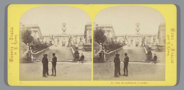 Ernest Eléonor Pierre Lamy captured "Restanten van het Huis van de Faun, Pompeï" with a stereo camera. The photograph presents the haunting remains of a once-thriving household frozen in time. Lamy's lens offers a glimpse into the power dynamics of 19th-century archaeological tourism. During this period, sites like Pompeii became stages where European travelers performed their own cultural dominance. It is interesting how the figures in the photograph are positioned almost as if the ruins are a mere backdrop. The inclusion of local individuals, perhaps guides or caretakers, subtly highlights the colonial gaze inherent in the act of documenting and consuming ancient cultures. This image invites us to reflect on the layers of history and representation embedded within archaeological sites. What stories do these ruins hold, and whose voices are amplified or silenced in their interpretation? Perhaps "Restanten van het Huis van de Faun, Pompeï" encourages us to consider the complex relationship between past and present.