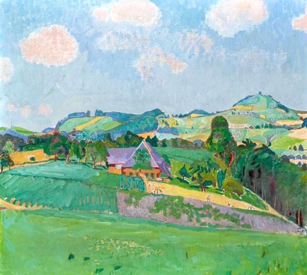 Maximilien Luce made this painting, Moulineux, la teinderie, probably en plein air, and you can almost feel the breeze in it. Look at how he's built up the surface with little touches of paint, like he's knitting the landscape together, bit by bit. The colours feel muted, restful; soft greens, pale yellows, and these lilacy mauves that give the whole thing a dreamy quality. It’s like he's not just painting what he sees, but also what he feels, as he builds a conversation between reality and reverie. Check out the brushstrokes in the foreground: they're loose and free, almost scribbled, but somehow they all come together to create this convincing impression of a grassy field. It's a beautiful example of how abstract marks can add up to something real. Luce was part of that whole Impressionist vibe, but his work has an extra, slightly grittier edge, that reminds me of Pissarro. Both artists understood the power of paint to capture not just a scene, but a mood, an atmosphere, a whole way of life. And like all great art, this piece keeps inviting you to look again, to get lost in its textures and colours, and to find something new each time.