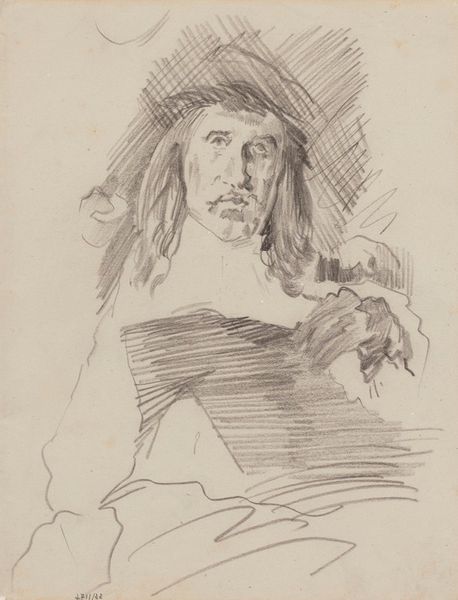 Editor: Here we have Max Beckmann’s "Female Portrait Study," created sometime between 1944 and 1949, a pen sketch rendered with graphite and ink on paper. The gaze is strong but seems to be searching; there is a pensiveness and raw humanity there. What stands out to you? Curator: Pensive, yes! I'm immediately struck by the seeming contradictions layered in this seemingly simple sketch. See how the stark, almost harsh lines define her features, giving her a sort of unflinching presence? It is as if Beckmann is searching for some absolute essence of this person. But then, the incompleteness, the sketchiness... it suggests vulnerability, impermanence. He catches her looking inward, no mask, and maybe he sees something of himself? Don’t you get the sense he has stilled a thought or memory? Editor: That tension between raw honesty and hidden depth is compelling. You mention a searching quality, almost like he's using the sketch to understand something beyond just her physical appearance. Is that a reflection of the time, just after the war? Curator: Absolutely! He fled Germany, the Nazis labelled his work 'degenerate' ... He paints what he cannot cast off from his mind, but filtered. He’s laying bare something universal, a sort of quiet desperation mixed with resolve that feels so right for post-war Europe, or honestly, right for right now. What do *you* see in her eyes? Editor: I see a resilience, like she's witnessed something awful but isn't broken. So, even in its unfinished nature, the portrait suggests a powerful story. Thanks for shedding light on the emotional layers here. Curator: And thank you for prompting that journey! It reminds me how art really lives in that space between the artist’s intent and the viewer’s own story.