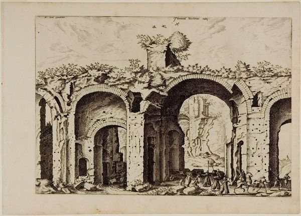 Wenceslaus Hollar created this etching of the Baths of Diocletian in Rome in 1641. Hollar, a Bohemian printmaker active in 17th-century Europe, captured the grandeur of the ancient Roman ruins. The Baths of Diocletian, once a vibrant social hub of imperial Rome, speak to the transience of power. Consider the historical and cultural context: Hollar, living through the turmoil of the Thirty Years' War, perhaps found resonance in depicting the decay of even the most powerful empires. These ruins stand as a testament to the rise and fall of civilizations, a theme that touches on our own anxieties about permanence. The overgrown arches and crumbling walls evoke a sense of melancholy, prompting reflections on time, memory, and the cyclical nature of history. Hollar’s etching invites us to contemplate the layers of history embedded within these stones, and the human stories they silently hold.