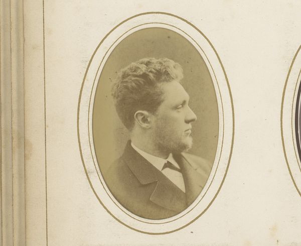 Editor: Here we have "Portret van een jonge man," or Portrait of a Young Man, a gelatin silver print photograph taken sometime between 1860 and 1900 by H. Heyden. There’s such a quiet dignity to this portrait; it feels so personal. What strikes you most about it? Curator: Well, beyond the inherent charm of a dapper young fellow caught in time, I'm drawn to the light, you know? It isn't just illuminating him, but feels like a revelation. And, that oval frame – doesn’t it remind you of a locket, or some cherished memento tucked away in a drawer? There’s such intention, such artistry in creating what's clearly intended to be seen as a window into a soul. What do you make of that slightly askew bowtie, almost fighting for attention? Editor: It does add a touch of vulnerability, doesn’t it? Almost like he's not quite comfortable playing the role of a proper gentleman, which somehow makes him even more endearing. Curator: Precisely! It hints at a story beyond the image, which is what photography, at its heart, always does for me – sparks a little fiction factory in the mind. This photograph is more than a capture; it's a portal, beckoning us to imagine the life and dreams held within. Maybe the ill-tied bow is how we access this untold history. What do you think the artist intended with that little window of possibility? Editor: It makes me think that these intimate historical portraits really invite our own reflection. The story they seem to tell is partially our own making. Curator: Indeed, in some way, that is perhaps what portraiture should always aspire to. It holds up the best version of you and me for a brief, still moment.