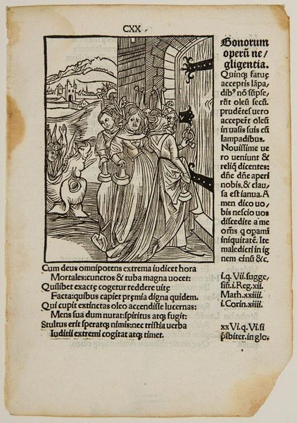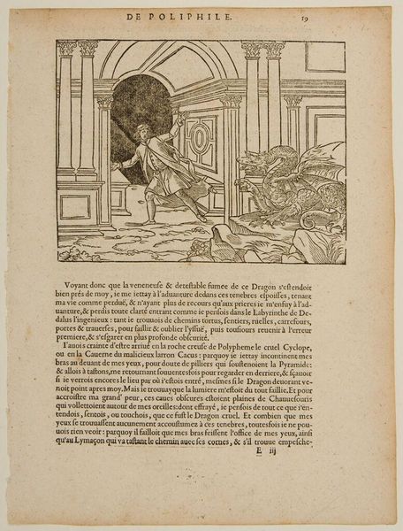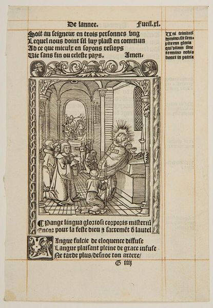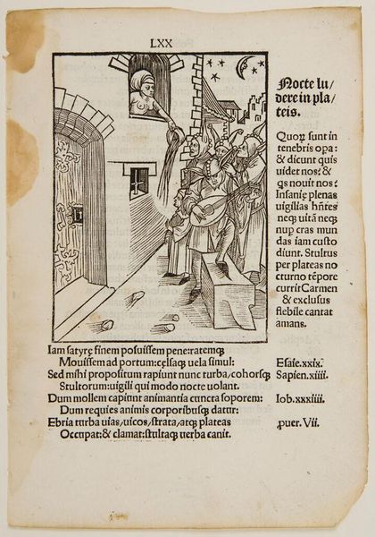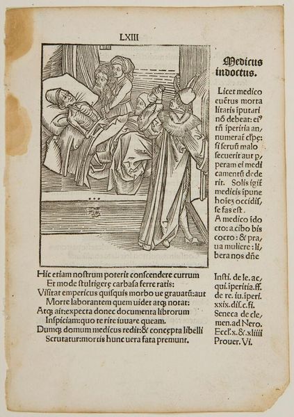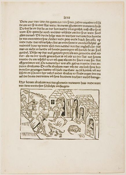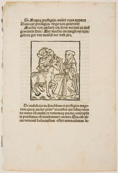 Curator: This is an intriguing woodcut, titled "Ch. 29. Who Judges Others." It's by an anonymous artist. What's your initial impression? Editor: Well, it certainly feels like a morality play! Dark, chaotic, with these grotesque figures looming over what looks like a deathbed scene. Is that a demon whispering in someone's ear? Curator: Quite possibly! The imagery pulls heavily from the symbolic language of sin and judgment. Notice how the dying figure is surrounded by both a praying figure and these menacing creatures, representing temptation and divine retribution. Editor: It’s heavy handed, yet effective. The stark contrast of black and white in the woodcut really amplifies the sense of dread and the eternal struggle between good and evil. It is quite dramatic, don’t you think? Curator: I agree. The artist is using those stark contrasts to emphasize the text's message about hypocrisy and self-reflection before judging others. The composition keeps drawing your eye between the dying figure and the menacing figures, as if they're intrinsically linked. Editor: It’s a vivid warning, then. A stark reminder that we all face our own demons, internal and external. So perhaps before condemning someone else, we should look inward, as the text suggests. Curator: Precisely. And in doing so, perhaps find a little more compassion, a little less judgment.