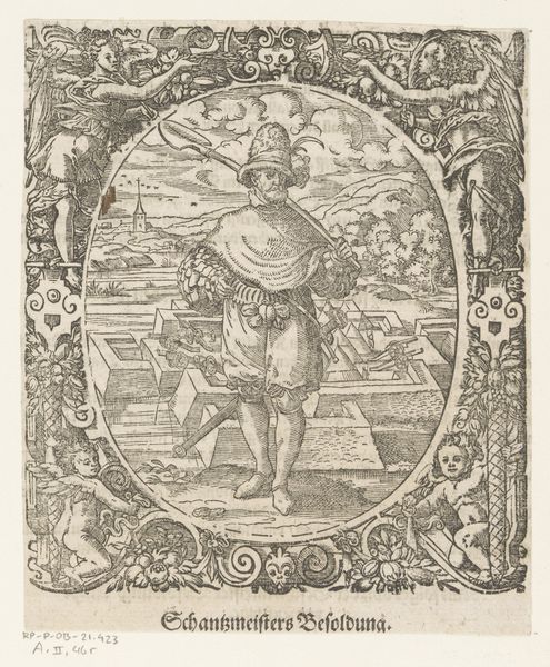 Editor: Here we have Jost Amman’s "Koerier" from 1573, a woodcut print. It features a rather stately-looking courier against a backdrop of tents and activity. The details seem so intricate, like miniature labors captured in ink. What’s your read on this piece? Curator: Well, given the context of the late Renaissance and Amman's focus as a printmaker, it's interesting to consider how this image was produced, circulated, and consumed. Woodcuts allowed for mass production, making imagery like this accessible beyond the elite. Consider the labor involved – the cutting of the woodblock, the inking, the printing itself – each step a skilled craft. Editor: That's a fascinating point. So it’s less about high art and more about the accessibility afforded by the materials and the process? Curator: Precisely. And think about what a “courier” signified in 1573. This wasn’t just someone delivering messages; it was a vital component of political, military, and economic systems. Amman's choice of subject says something about his interest in those systems. He is representing how knowledge and goods are transported. Are you thinking about how his clothes relate to a rank? Editor: I hadn't, but it makes sense. The quality of the printing almost mirrors the importance of his task... almost as though the image amplifies the prestige and materiality of what a courier delivers? Curator: Indeed! The image itself becomes a commodity, conveying not only the likeness of a courier, but also a message about the socio-economic networks it represents. The very means of its production contributed to those networks. Editor: It's incredible how a simple woodcut can reveal so much about production and societal function. I was so focused on the figure, but this material lens makes me think of everything *around* the courier too. Curator: Exactly. Art isn't just about the image itself, it's about the hands that made it, the system that supported it, and the audience who consumed it.