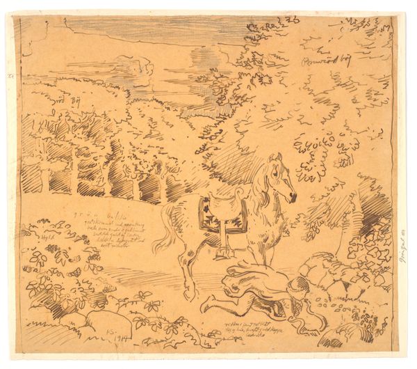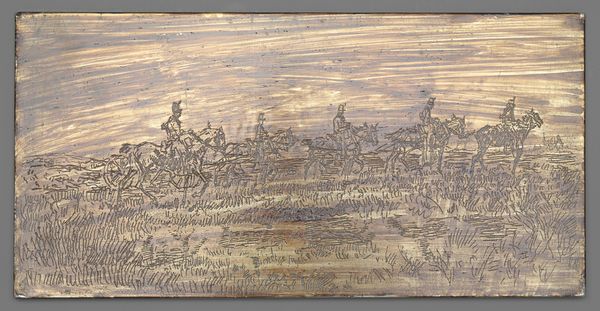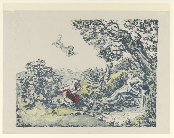 Editor: So, this painted plate, dating back to 1750-1760, is a watercolor river landscape by Friedrich Hess. It feels quite dreamlike to me, almost theatrical. What strikes you when you look at it? Curator: I see a potent visualisation of societal structure. Note the sharp division between the established wealth on the right, with the large house, and the almost chaotic, slightly gothic depiction on the left with the architectural ruins. It really speaks to the disparities of the era. How do the figures relate, and how is access managed or not managed, through means such as the bridge? Editor: That’s a compelling point. I hadn't considered it in terms of wealth disparity. The bridge feels like a deliberate connection, but it’s also quite small and unassuming, almost fragile. Curator: Exactly! What might that fragility symbolise within a rapidly changing Rococo Europe? Think about power, access and gender at the time. Do you see these figures truly connecting, or just crossing? And, more importantly, who is allowed to cross and who is not? Editor: Now that you mention it, it does feel more like a liminal space rather than a true meeting point. I wonder, what role did these painted plates play in the context of their time? Were they simply decorative or something more? Curator: That's the critical question, isn’t it? This was not merely decoration, but an exercise in class, perhaps social commentary masquerading as decoration. Who commissioned it and what conversation might this artwork encourage among their peers? Considering art through this lens can really bring history to life. Editor: I agree. Seeing this landscape as a statement on social mobility rather than just a pretty picture gives it so much more depth. Thanks for that insight! Curator: My pleasure! Considering artwork with respect to power structures helps us recognise history's lasting effects. It encourages a more questioning way of looking at art history.