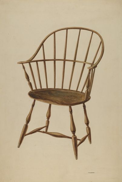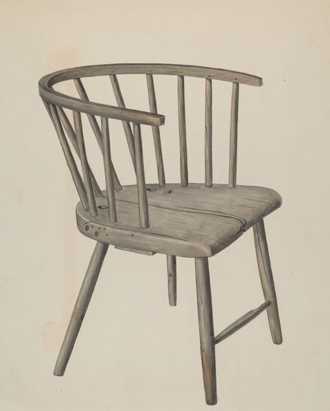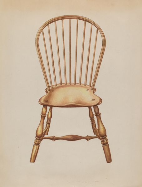 Vincent Rosel made this watercolor of a Windsor Fan-back Chair, part of the Index of American Design, a WPA program. It asks us to consider the public role of art in the midst of the Great Depression. The Index, active in the United States from 1935 to 1942, employed artists to create a visual survey of American decorative and folk arts. Its aim was to document and celebrate the nation's artistic heritage, and to promote regional styles. The choice of a common chair reflects this democratic impulse. Mass produced yet handcrafted. This image participates in a larger cultural narrative about American identity, one that values simplicity, functionality, and local craftsmanship. Analyzing the IAD and its output reveals the social conditions that shape artistic production, and ultimately asks us to reflect on the politics of imagery during times of crisis. Consulting WPA archives and period scholarship can illuminate the Index's complex legacy.