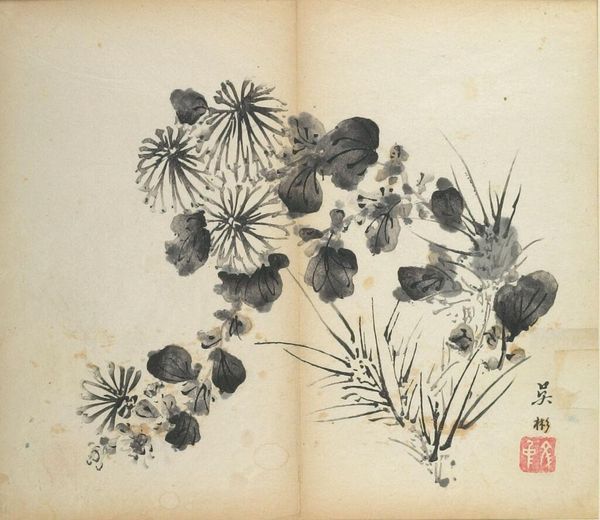Editor: This is Hu Zhengyan's "Branch of Plum Blossoms," an illustration from a manual likely made of paper and ink. It feels very delicate, almost like a blueprint. What can you tell me about it? Curator: This print exemplifies a pivotal shift, doesn't it? Consider the manual's production—multiple blocks, skilled labor, and the sheer volume of impressions. How does this democratized access to art challenge our notions of artistic value and originality? Editor: So, you're saying the process of its making changes how we see the art itself? Curator: Precisely! It forces us to consider the social and economic context of art, not just its aesthetic qualities. It makes you think, doesn't it? Editor: It does. Thanks for making me see the image and its impact from another perspective.