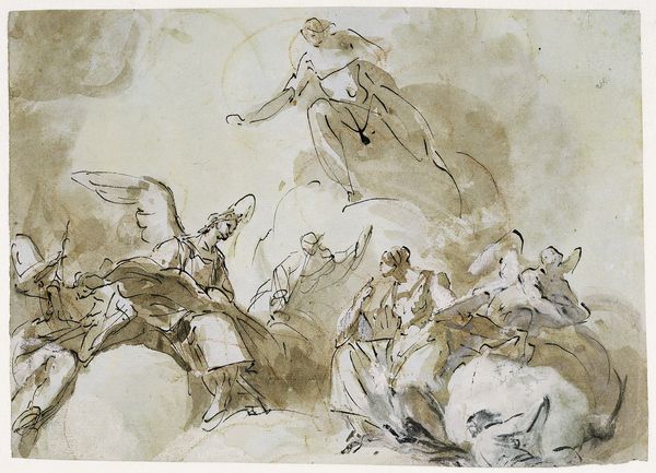 Editor: Here we have Domenico Mondo’s "Studies for Arch Figures (recto and verso)," created around 1785 using pen and ink. There's a fluidity and grace to the figures that I find compelling. What can you tell me about this work, seeing it through the lens of its historical moment? Curator: Well, it's fascinating how Mondo synthesizes Baroque dynamism with nascent Neoclassical ideals here. Look at the subject matter - these idealized figures. It echoes the era's obsession with classical antiquity, fueled by archaeological discoveries and the Enlightenment's emphasis on reason and order. Yet, the energetic ink strokes and dramatic compositions still cling to the theatricality of the Baroque. Editor: So, it's a visual representation of societal shifts? How do you think it was received by the public back then? Curator: Absolutely. Considering the rise of academies and art criticism, works like these became subjects of intense debate. Did they adhere to the correct classical forms? Were they morally uplifting? These drawings likely served as preparatory sketches for larger history paintings, which were considered the highest form of art because of their potential to instill civic virtue. The *idea* was that public virtue could be encouraged through imagery. Editor: That tension between established style and emerging ideals must have shaped art's trajectory. Thanks for the insightful analysis! Curator: My pleasure. Seeing art as a reflection of these forces gives a richer understanding. I find it compelling to remember that artwork’s public role was to form upstanding citizens, so seeing these stylistic transitions within the works is always a fun moment.