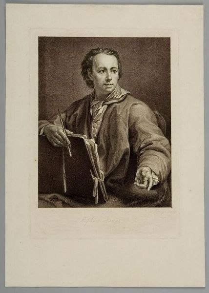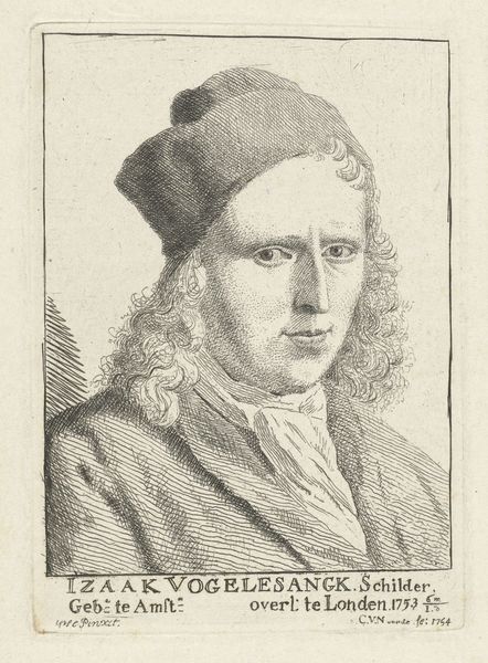 This is a portrait of Dirk Langendijk, made by Joannes Bemme using etching techniques. While the exact date remains unknown, we can appreciate this image as a product of its time, made in the Netherlands during a period of significant social and political change. The artist subtly conveys the sitter's status and character through details of clothing. The image creates meaning through visual codes, cultural references, and historical associations. The sitter's choice of dress invites us to consider how individuals navigated shifting social landscapes through their appearance. The scarf tied around the sitter's neck invites interesting questions. Does it reflect the sitter's occupation or the values he embraced? As historians, it's our role to delve into the social conditions that shape artistic production. By researching the lives of both artist and sitter, as well as the institutional histories that supported their work, we can gain a deeper understanding of the complex interplay between art, society, and individual expression.