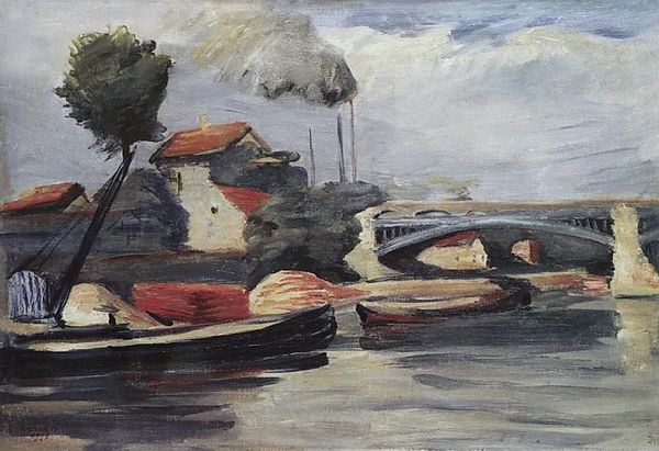 Alfred Sisley captured "The Machine at Marly" with oil on canvas, immortalizing an architectural behemoth. The structure commands attention, its arches and orderly windows hinting at an industrial heartbeat within. The arches here, repeated and rhythmic, echo the great aqueducts of Roman engineering. They remind us of humanity’s enduring quest to harness nature's forces. Transposed here to Sisley's industrial structure, the arches become symbols of progress. They evoke both triumph and the potential hubris of technological advancement. Consider how the archway motif traverses time, from ancient temples, cathedrals, to modern bridges. In each manifestation, it carries connotations of passage, transition, and monumental achievement. The image engages our collective memory, stirring a deep, almost subconscious recognition of the power and ambition inherent in architectural forms. In Sisley’s painting, the machine stands as a testament to the relentless march of progress, inviting us to reflect on the cyclical nature of innovation.