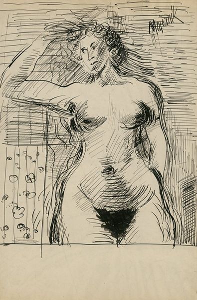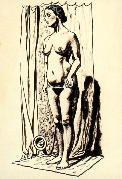 Rafael Zabaleta made this drawing, Nude Woman, at an unknown date using ink. Zabaleta produced this drawing of a nude woman, likely in Spain during the mid-20th century, a period marked by political and social repression under Franco's dictatorship. The starkness of the ink drawing, combined with the woman's direct gaze, challenges the traditional, often idealized, portrayal of the female nude. The inclusion of the woman's shadow may allude to the suppression of personal freedom, and the lack of background detail suggests a sense of isolation. Spain's art institutions, heavily influenced by the state during this period, often promoted conservative themes. Zabaleta, however, along with other artists, used imagery to subtly question the social norms and political climate. The interpretation of art requires historical perspective, it needs consideration of the complex interplay of social and institutional forces at play during its creation. By consulting archives, period publications, and biographies, we can gain a deeper understanding of art’s role in society.
