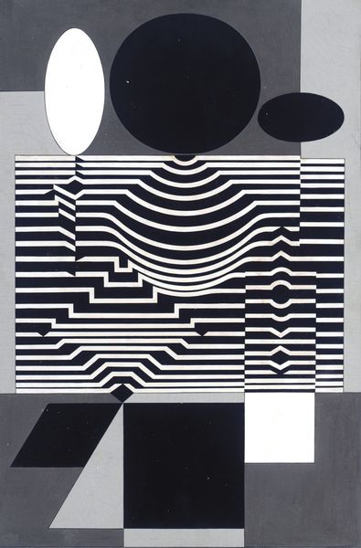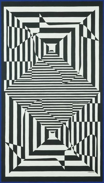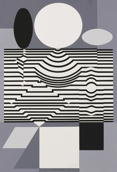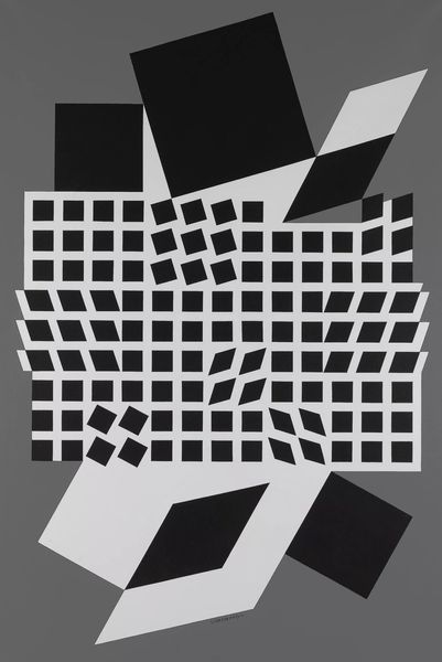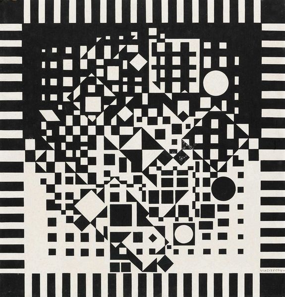Victor Vasarely made this abstract work using contrasting black and white. It's a real head-scratcher, isn't it? I’m drawn to the way the geometric shapes create movement and depth, like a visual puzzle that keeps shifting as you look at it. There's a lot to take in, the stark contrast between the black and white creates a strong visual impact. Vasarely plays with these elements to create an optical illusion, making you feel like the shapes are moving or vibrating. Look closely at the jagged edges and pointed forms – they give the piece a dynamic quality, almost like it's bursting with energy. This piece makes me think about Bridget Riley's Op Art. Like Vasarely, Riley uses geometric shapes to create optical illusions and visual effects. Both artists invite us to question our perception and engage with art in a playful, interactive way. Ultimately, it's up to us to decide what it all means, and that’s what makes art so exciting, right?