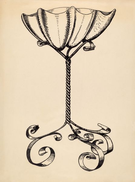 Curator: Welcome. Here we have Wilbur Rice’s “Horseshoe Bonnet,” a watercolor and pencil drawing dating from between 1935 and 1942. Editor: My first thought is how delicate it appears, and slightly antiquated. The colours, muted blues and reds, give it a sombre feel, like something found in a forgotten attic. Curator: The interesting thing about Rice is how he positions everyday objects, like this bonnet, within a broader historical context. Fashion, even something as seemingly simple as headwear, can tell us a lot about the social mores and class structures of the time. Editor: Agreed, but let’s consider the artistry. Watercolour offers such immediacy and transparency, right? But pencil underneath would have required layering and building, implying careful production, a real intentionality with the image. I’m wondering about the bonnets manufacture, materials, who wore it? What kind of labour was involved to produce something like that. Curator: Precisely! The choice of a bonnet reflects the domestic sphere, the societal expectations placed on women during this period. Headwear was a signifier, revealing social status and even marital status. Rice captures this visual language, prompting us to consider women’s roles and visibility, or lack thereof. Editor: Visible, maybe, but within certain defined parameters. You know, considering the techniques; the layered watercolors, tiny embellishments—it's almost subversive. You're making me wonder if this image acts as a mirror reflecting the limitations, even as the owner proudly dons a garment like this in public. Curator: That's astute. And while the colours lend it that quiet dignity you noted earlier, that hint of faded glory is interesting. What it suggests is a bygone era of social constraints, and I think, to a certain extent, women pushed back through items of clothing. Editor: So, from a detailed representation of something functional, we get an artefact offering insight into culture. Who knew such quiet dignity could spark such thought? Curator: Exactly. Rice gives us much to think about and is not just capturing a moment but really all of its historical connotations.