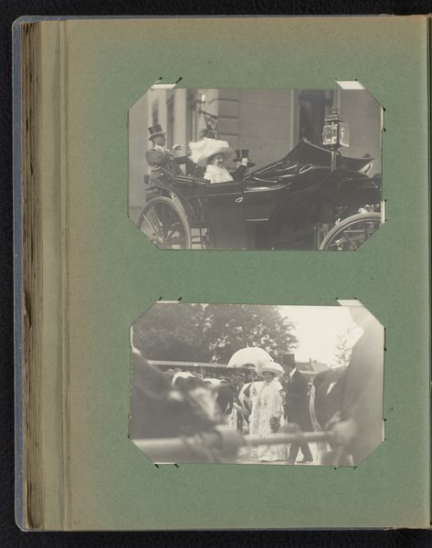This is a book page showing two postcards, likely from the early 20th century, portraying Queen Mother Emma and Queen Wilhelmina's visit to Paris, made by an anonymous photographer. The monochromatic tones create a subdued atmosphere, emphasizing the historical nature of the images. The contrast between light and shadow renders a tactile quality, as the images are literally 'touched' with light. In the upper postcard, the detailed lace of Queen Emma's dress is sharply rendered to give the image a very textural quality. Look closely at the way the photographer has framed the Queen’s carriage in the lower image, the dark mass of the carriage wheels echoes the dark forms of the horses, creating a visual rhythm. The straightforward approach reminds me a little of Eugène Atget's documentary photography of Paris – a similar capturing of a moment in time, both of which embrace a kind of beauty in the everyday. Ultimately, these postcards become small windows into the past, revealing as much about the era's aesthetic as they do about its historical figures.