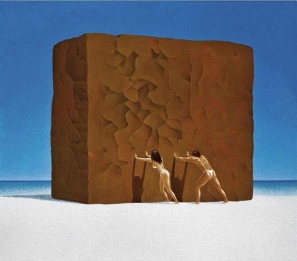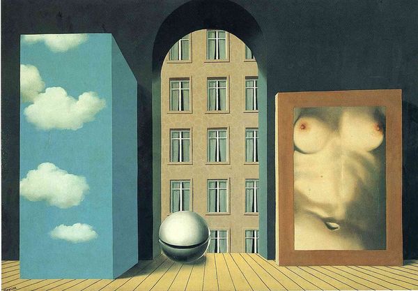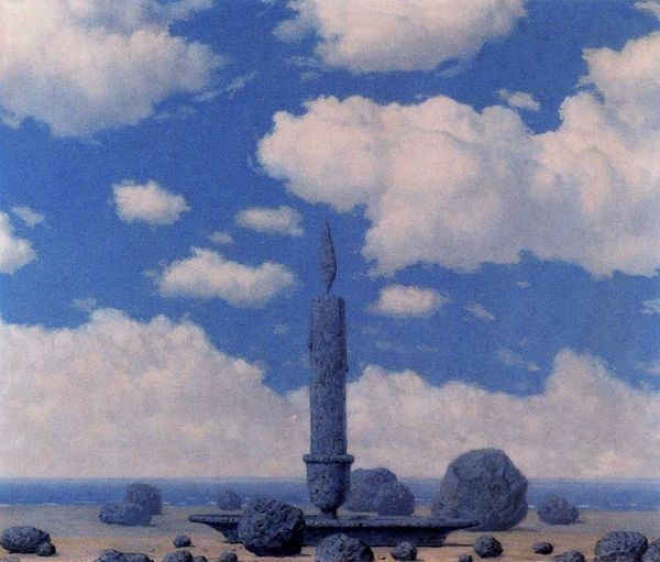 René Magritte made this painting, A Storm, with oil on canvas, and well, it's a trip! The stark contrast between the heavy, almost imposing architectural shapes and the fluffy, buoyant clouds is so bizarre it's brilliant. Magritte’s handling of paint here is so smooth; these monolithic forms have a matte finish. The clouds, though, they're like daubs of soft watercolor, barely there, fleeting moments captured in a storm of the mind. Look how he places the clouds, almost as if they're physically interacting with the blocks. This is what I think of as the physical and the ephemeral—concrete structures against the changeable sky. It's like a stage set for a play about perception. The piece reminds me of de Chirico, but with more humour! It is a strange, quiet joke about what is real.