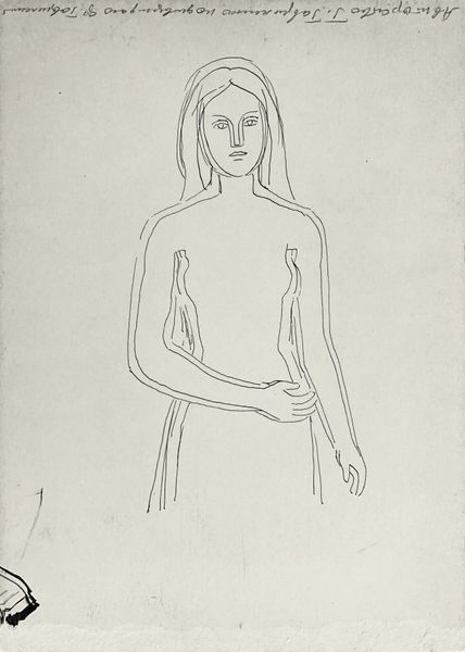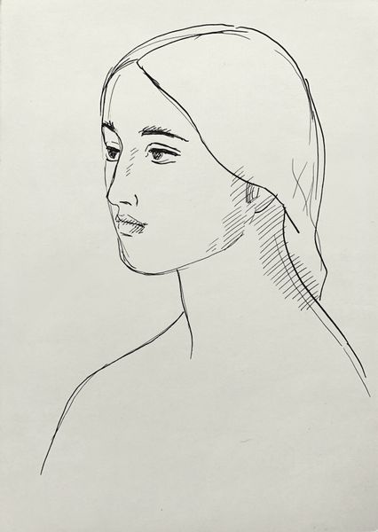 Editor: Here we have Hryhorii Havrylenko's "Female Image" from 1975, a drawing rendered with simple lines. I'm immediately struck by the economy of line, and how much emotion is conveyed with so little detail. What do you see in this piece? Curator: Indeed. That starkness is precisely where the image derives its power. Line, as you see it here, is more than a descriptor. It evokes ancient forms: consider the Greek vase paintings or early Christian icons, where the figure is outlined to signify spiritual essence rather than mere physical form. It’s a stripping down to the archetypal feminine, isn't it? A universal woman, almost. Does it resonate with similar imagery in your mind? Editor: That's interesting. I hadn't thought about the connection to iconography directly, but now I see that timeless quality. It's like the drawing is trying to capture an ideal rather than an individual. Curator: Precisely. The profile view, common across different eras, underscores the image's purpose – to present an unchanging archetype. There’s something almost dreamlike in the figure, yet so directly defined. The dream evokes not an individual person but collective memory. Note how the artist is playing with just the essence. Are those subtle additions truly corrections, or are they echo of the multiple aspects that we all embody? Editor: That makes so much sense now! Seeing it as a reflection of collective memory changes my perspective. It's not just a portrait; it's a symbol. Curator: Exactly! These simple, continuous lines hold layers of cultural meaning. When considering how symbols permeate through history, you appreciate this drawing’s place not just in contemporary art but also in this long lineage of representation. What new meanings did you discover? Editor: I now understand how seemingly simple artistic choices, such as using line in this drawing, can connect a piece to deep, cultural histories and convey symbolic weight. It really opened my eyes to the power of visual language. Curator: Wonderful! Every viewing provides us another chance to expand our vocabulary of vision.