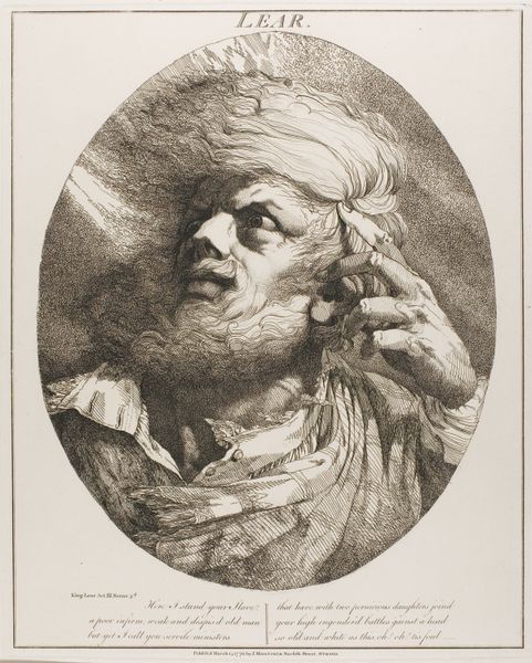 Curator: Here we have Robert Blyth’s depiction of Silenus. Look closely at the engraving, it's quite striking. Editor: Indeed. I find it rather grotesque, almost comical in its ugliness. It challenges conventional beauty standards prevalent during its time. Curator: The work definitely plays with the grotesque, a common trope in depictions of Silenus. Think about the socio-political implications. Editor: Absolutely. Silenus, the companion of Dionysus, often appears as a symbol of revelry, drunkenness, and a departure from societal norms. This image captures that perfectly. Curator: And Blyth, active in the late 18th century, situates himself within a longer tradition of representing classical figures. It served specific social functions. Editor: But it also invites us to question the values of his society – what is deemed acceptable, what is considered monstrous? A lasting and provocative reflection, really. Curator: A worthy point. It certainly gives us much to consider regarding the role of imagery in shaping perceptions.