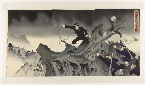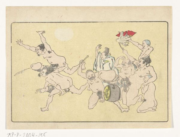 Editor: This print, "Victims" by Larry Rivers, shows a chaotic scene, with many figures scattered across the picture plane. What symbols do you see at work here? Curator: Rivers uses the image of fallen figures, evoking vulnerability. Consider how the recurring motif of the "victim" is not just physical, but also a representation of societal wounds, visible trauma, and the psychological impact of violence. How might this resonate with viewers across different eras? Editor: I see the word "Africa" near the figure in the lower left. I hadn't noticed that before. Curator: Yes, it's a clue to a specific context, but Rivers' approach transcends geographical boundaries. The image of embrace suggests shared suffering, the white figure looming above reminds us of a ghostly shroud. The use of such emotionally charged images seeks to trigger memory, recognition, and empathy in the viewer. Editor: That makes me consider the power of shared human experiences. Thank you.