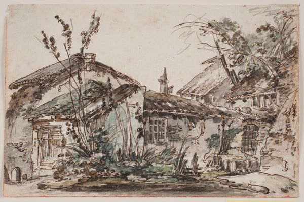 Editor: We are looking at "Fuori la grotta di Posilipo," a watercolor on paper by Johann Nepomuk Rauch, created in 1841. It’s a delicate scene. The architectural forms, though dilapidated, create a strong sense of depth, leading the eye towards the cityscape in the distance. The watercolor is skillfully applied in layers, enhancing the textured effect. What stands out to you in this artwork? Curator: Formally, this watercolor presents a compelling study in contrasting textures and linear perspectives. Consider how Rauch employed delicate washes to suggest atmospheric haze, juxtaposed with sharply defined architectural elements. What structural function do you observe in the arrangement of light and shadow? Editor: I see how the shadows define the shapes, giving them a three-dimensional quality. Curator: Precisely. Note how Rauch masterfully manipulated the tonal variations, the strategic placement of darker pigments, to achieve an interplay between light and form, between ruin and nature. Would you agree that this controlled use of the medium generates a compelling visual experience, quite beyond mere representation? Editor: I would definitely agree, yes. Curator: How so? What effects of form and texture do you think stand out? Editor: The ruins create a sense of fragmented time, and I think I overlooked that aspect initially because I was focused on identifying content. Thank you, this approach offers such a different way of considering the work. Curator: Indeed. Analyzing its formal components provides a means to decipher a visual text, inviting reflection on the enduring properties of form and structure.
