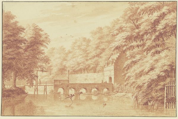 Cornelis Pronk made this drawing of the gate of Buren Castle with pen in the 18th century. The most striking feature is the gate itself, a symbol of transition and passage, standing between the known and the unknown, the safe and the potentially dangerous. Consider the recurring motif of the gateway throughout history. From the Ishtar Gate of ancient Babylon to the triumphal arches of Rome, the gate signifies power, control, and the demarcation of space. Yet, its arch also suggests openness, an invitation. Here, the castle gate is reflected in the water, a mirror image that doubles the motif, hinting at hidden depths and subconscious connections. The mirroring of the gate serves as a visual metaphor for the way our minds process memory, reflecting and reinterpreting the past in an unending cycle. The image engages viewers on a deep level by evoking feelings of longing, nostalgia, and the desire to explore. The gate invites us to reflect on our own passages and transformations. Its cyclical progression takes on new meanings depending on the viewer.
