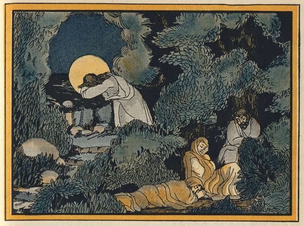 Curator: Oh, this is gorgeous. The mood, those colours! Is that longing I detect in that chap's pose, reaching for…what is that he’s reaching for, anyway? Editor: Indeed. We're looking at Ivan Bilibin's "Illustration for the Tale of Prince Ivan, The Firebird and the Grey Wolf," created in 1899. It’s done in tempera, showcasing Bilibin’s incredible skill with line and colour, inspired by traditional Russian folk tales. Curator: Tempera! That explains the dreamlike quality. Everything’s so precise and yet floaty at the same time. And look at the detail in that firebird's tail, or the almost jewel-like ornamentation along the borders of the artwork…he captures a whole world in a single scene. Makes me think of a stage set. Editor: It's fascinating how Bilibin blends the conventions of the Russian avant-garde movement with symbolism to visualize these stories. The firebird itself, a classic symbol of hope and good fortune in Russian folklore. Bilibin, through pieces like these, engaged with the cultural politics of his era, reclaiming a sense of national identity and tradition in response to a quickly modernising Russia. Curator: You know, there's something undeniably magical about this; like stepping into a half-remembered dream or fairytale from your childhood. It’s this sense of wonder that gets me. I get lost in the patterns and lines, you know? It’s more than illustration, it’s an enchantment! Editor: Precisely, and beyond enchantment it reveals so much about how the imagery in these folk stories was carefully re-framed in service of Russian nationalism in the late 19th century. Bilibin gives visual form to an imagined cultural past. Curator: Absolutely. And as the audience now, aren’t we all just Prince Ivans, in our own ways, forever reaching for that impossible, fiery dream? Editor: I think that's a lovely way to put it—a reminder that these historical pieces can ignite our imaginations and perhaps illuminate aspects of the contemporary experience.