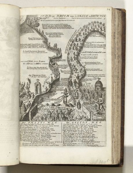 Editor: So, this print is called *Jupiter Appears with Two Kings to the Spaniards*, created in 1706 by an anonymous artist. It’s an engraving. What strikes me is how it blends earthly events with divine intervention. How would you interpret the symbolism here? Curator: It’s fascinating, isn't it? Notice how Jupiter, a figure of power and authority, is presented alongside earthly rulers. Consider how Baroque art often employed allegory to convey political messages. What emotions or ideas do you think the artist wanted to evoke by visually merging the classical with contemporary Spanish events? Editor: I see it creates a sense of legitimacy, as if the Spanish actions are divinely sanctioned. The text surrounding the image looks dense; does it shed light on the historical context? Curator: Absolutely. Texts, inscriptions, and emblematic images together become tools of persuasion. These elaborate details would resonate with a specific contemporary audience steeped in classical knowledge, myth, and rhetoric. How might someone unfamiliar with these symbols react differently, do you think? Editor: Probably miss a lot of the nuance and layers of meaning. For them, it might just seem like a standard historical scene with some figures floating in the sky. I think I need to bone up on my mythology. Curator: Indeed. And notice also how this continuity reflects an idea about lasting values through this deliberate imagery and the survival of symbolic representation through these images. The composition leads our eye upwards, does it not, to those ideals? Editor: It really does. I never would have looked so closely without understanding the iconography. Thank you for helping me unpack this image. Curator: My pleasure. It's a reminder that images speak volumes, and often in multiple languages!