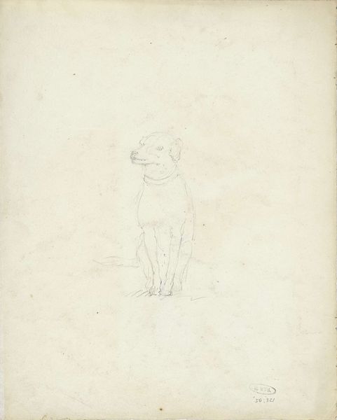 Editor: This work from the British School features a dog's head in pencil on paper. It's a simple sketch, but I find the dog's gaze quite compelling. What can you tell me about its significance? Curator: Sketches like this one, especially of animals, often served as preparatory studies. Consider how dogs were portrayed during the British School's active period. What role did they play in society? Editor: I imagine dogs were symbols of status and companionship. Curator: Precisely. They often reflected the values and aspirations of the owner, acting almost like extensions of their self-image within the cultural landscape. Editor: That’s a really interesting point. I hadn’t considered that angle. Curator: Understanding the social context allows us to see beyond just the surface of the artwork. It enriches our appreciation. Editor: I will definitely keep that in mind in the future. Thanks.