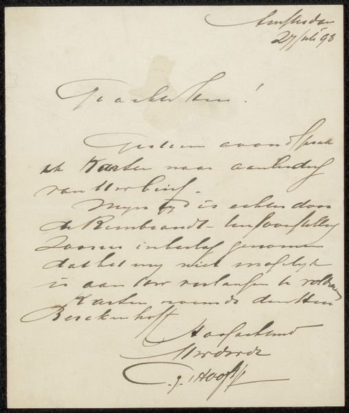 Pieter George Westenberg penned this letter to Adriaan van der Willigen in Amsterdam, April 1820. Written during a time of significant social and political upheaval in Europe, it offers us a glimpse into the more personal exchanges that occurred amidst broader historical currents. The elaborate script and formal tone remind us of the social conventions of the time, but the emotional content hints at the underlying complexities of human relationships. The letter speaks of portraits and personal matters, suggesting a world where identity was carefully constructed and maintained through art and social interactions. Westenberg's salutation “with the most respect and affection” speaks to the carefully curated public expression of emotion of the time. It makes me think about how historical documents such as these can provide an intimate glimpse into the lives and emotional worlds of individuals, inviting us to reflect on our own connections to the past.