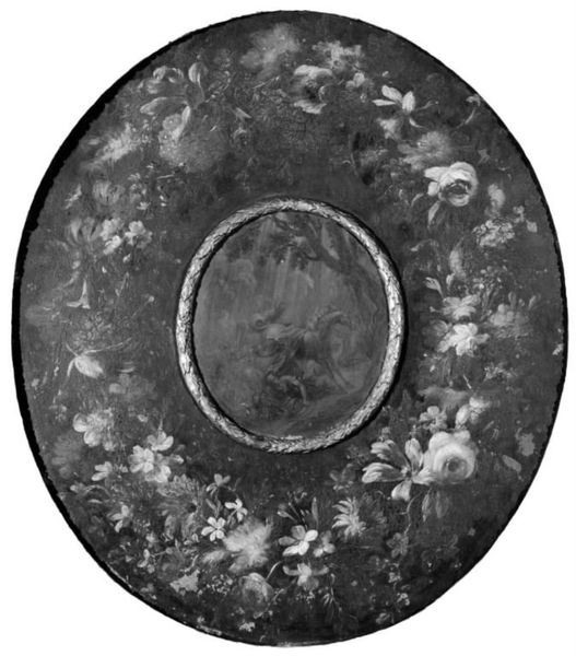 Editor: This diminutive portrait of Sir Isaac Newton by James Tassie is remarkable. The carving is so detailed! What symbols do you see embedded within this image? Curator: Note how Newton's profile, a silhouette of pure reason, is framed by classical figures, an allegory perhaps of science and justice bestowing honor? The scales represent balance, order… values Newton himself championed. What feelings arise when you view it? Editor: I hadn't thought about it that way. It makes me consider how symbols shape our understanding of historical figures. Curator: Indeed. It illustrates the enduring power of imagery to encode meaning and transmit cultural memory.