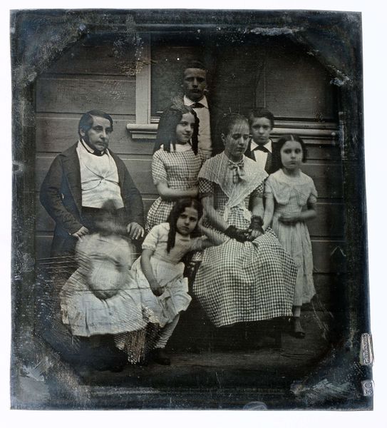 Willem Frederik Piek Sr. made this group portrait of the Piek family using photography, a relatively new medium during his lifetime. It's an intimate glimpse into a bourgeois family in the Netherlands during the late 19th century. The photograph captures a rigid social structure, visible in the formal attire and posed nature of the subjects. The women are adorned in dresses that symbolize domesticity and modesty, while the men wear suits that signify their roles as providers and heads of the household. The children, mostly confined to the laps of adults, represent the family’s future. Family portraits like this were often used to solidify social standing and convey an image of respectability. Yet, beyond this constructed image, we might wonder about the individual stories of each family member. Perhaps there were tensions, dreams, or hidden desires that the camera couldn't capture. What does it mean to be preserved in this manner, to have one’s identity framed by social expectations and familial roles? This photograph, while seemingly straightforward, invites us to contemplate the complexities of identity, representation, and lived experience within a specific historical context.