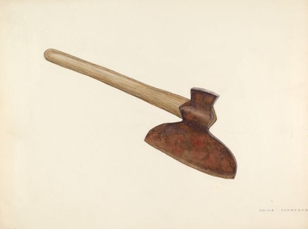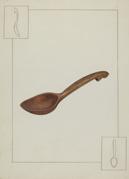 Editor: Here we have Yolande Delasser's pencil drawing "Ladle," circa 1936. It's a humble subject, yet the artist has rendered it with such care and precision. The subtle shading gives the wooden texture such weight and solidity. How do you interpret this work through a more formal lens? Curator: Indeed, its simplicity is deceiving. Observe how Delasser articulates form through delicate tonal gradations, manipulating graphite to simulate the play of light on the ladle's surface. Note the considered composition: the positioning of the object allows for a study of its contours and a demonstration of draughtsmanship. Editor: So, the formal elements are foregrounded rather than any deeper symbolism or meaning? Curator: Precisely. This drawing invites us to appreciate the inherent qualities of the medium itself. Pencil on paper becomes an instrument for exploring shape, volume, and texture. What semiotic interpretations could arise when deconstructing the interplay between light, shadow, and form within the composition? Editor: The way light catches the inner curve makes it seem almost concave, despite being on a flat page. I wouldn’t have noticed that subtlety without you pointing it out! Curator: It's a testament to the artist's skill, wouldn’t you agree? The piece showcases Delasser’s mastery in rendering such a simple tool with meticulous attention to detail, allowing the viewer to fully appreciate her control over technique. Editor: I see it now; thank you for shedding light on how focusing on the formal qualities alone can elevate an otherwise commonplace object to a captivating piece of art!