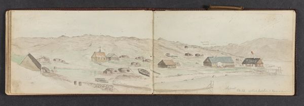 Lars Møller created this sketch of a settlement using watercolour and graphite on paper. The artwork depicts a community nestled in a stark, mountainous landscape. The buildings appear modest, seemingly integrated into the natural environment. The presence of a church is a visual marker and suggests a place where values are shared. Møller was born in 1842, a time of increased Danish involvement in Greenland. The sketch might have been produced during one of the artist's stays in Greenland. Perhaps this sketch reflects the artist's observations about the social structure of a small settlement? Was it a self-consciously progressive attempt to represent the landscape? To truly understand this work, further research into the colonial history of Greenland, the role of the church, and the artist’s biography would be invaluable. It reminds us that the meaning of art shifts, depending on the social and institutional contexts in which it is viewed.