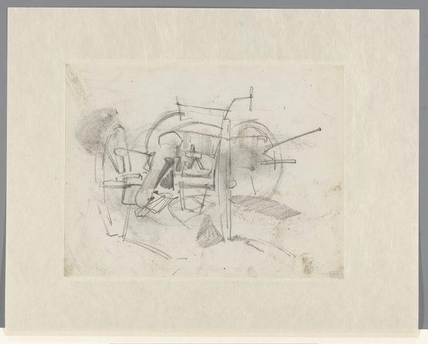 Curator: There’s something inherently satisfying about Pieter George Westenberg’s pencil drawing, "Slijpsteen," created sometime between 1801 and 1873. It’s currently held here at the Rijksmuseum. Editor: It has that quiet, utilitarian mood, doesn't it? All greys and browns. Like something you'd find forgotten in a barn. It projects a kind of solid stillness. Curator: Exactly! Westenberg captures the very essence of a grindstone – not just as an object, but as a silent witness to countless acts of labor. Think about how fundamental sharpening tools were. Every edge, every tool brought back to life. Editor: Yes, the grindstone: such a key object in so many symbolic and mythical systems. Waterwheels and grindstones… turning, cyclical motion is so deeply connected to time, the harvest, and those old alchemical ideas about refinement through repeated action. It’s as though, without realizing it, Westenberg has tapped into this very ancient feeling about tools and progress. The fact it's so roughly drawn and imperfect amplifies that feeling for me. Curator: I see what you mean! And while it's definitely a realistic depiction, there's a deliberate lack of detail that forces you to focus on the form and function, maybe like memory itself… Editor: Definitely memory… and a bit about the hand. I wonder what sort of skills and values this represents… perhaps it’s about how human labor reshapes raw potential… We can draw lines through to our modern, almost compulsive drive for “self-improvement”. It's subtle, though, very quiet… more a hint of these things than a declaration. Curator: Beautifully put. A simple drawing, yet brimming with layers of meaning and echoes of history. Editor: Makes you appreciate the things we often overlook, doesn’t it? That’s the great charm of studying humble artworks: the past made vivid in the present moment.