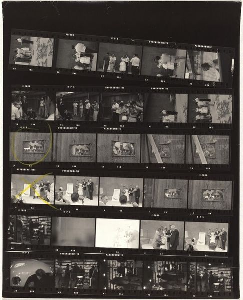 Curator: Dennis Feldman created this gelatin silver print, titled "TV – Topeka, KS – 1974." The dimensions are roughly 8 1/2 by 11 inches. Editor: It feels so staged, yet undeniably intimate. The worn furniture, the TV as the focal point. It's a fascinating still life of everyday life. Curator: Exactly. Feldman seems to be commenting on the pervasive influence of television in American households during the 1970s and its impact on individual consciousness. Editor: I see a tension between the mass-produced object—the TV—and the personal space it occupies. Even the cat seems indifferent, highlighting the television's ubiquitous presence. What do you think of that material contrast? Curator: It underscores the normalization of media consumption. The TV isn’t just an object, it's a window into the social and political narratives shaping public opinion. Editor: The image leaves us pondering on our own relationship with technology and its impact on domestic life. Curator: Indeed. Feldman’s photograph acts as a poignant reminder of a time when television began to truly dominate the cultural landscape.