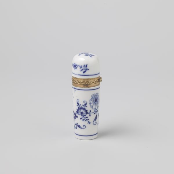 This porcelain tea caddy, made by Lowestoft between 1757 and 1803, presents a delightful interplay of form and motif. Its octagonal shape is softened by the delicate, raised floral designs which create a tactile, almost sculptural surface. The cobalt blue patterns contrast strikingly against the pristine white, drawing the eye to miniature landscape scenes framed within circular reserves. The strategic use of repetition and symmetry lends the caddy a sense of formal balance, yet this is subtly disrupted by the varying scenes depicted in each reserve. These vignettes, possibly inspired by imported Chinese porcelain, invite a semiotic reading, suggesting narratives of trade, travel, and cultural exchange. The geometric precision of the octagonal form combined with the organic fluidity of the floral and landscape designs creates a dynamic tension, destabilizing any singular interpretation. Consider the way this interplay engages with broader philosophical concerns about how objects mediate our relationship with the world. This caddy, with its blend of utility and artistry, invites endless contemplation.
