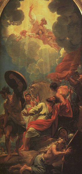 Editor: Wilhelm von Kaulbach's painting, "Crusaders Before Jerusalem," at the Met, it's intense, full of action but also reverence, almost like two scenes clashing into one. It's epic in scale, visually dramatic, and emotionally charged. What’s your reading of it? Curator: The work speaks to the nineteenth-century's fascination with the Middle Ages, but crucially, how those events were reshaped for a contemporary audience. Consider the painting’s role within the burgeoning museum culture, inviting a largely Christian audience to reflect upon historical narratives of religious triumph and power, or narratives that glorified western society as a vehicle of the Divine. Does the glorification of violence trouble you when viewing it? Editor: Definitely. The reverence contrasts with the conquest. It makes me wonder, was this painting intended as celebration, or something more complex, maybe a comment on power and piety? Curator: Precisely! Examine how Kaulbach presents the Crusaders: not just as warriors but as divinely sanctioned figures. This blend of religious fervor and military might reflects a specific 19th-century ideology. Remember that history paintings like this reinforced a national or cultural identity. Whom do you think the intended audience would see themselves within this tableau? Editor: Probably within the idealized Crusaders, seeing themselves as inheritors of that legacy, a bit troubling, given the violence inherent in the Crusades. So, the painting serves as propaganda as well? Curator: It functions as both historical representation and cultural tool. Art institutions then played a critical role in validating such grand narratives. Seeing it today, one should question what the painting tells us about the continued power of such narratives, particularly within our cultural institutions. Editor: I never considered that aspect. It highlights how deeply ingrained certain perspectives were and how museums continue to be shaped by these inherited biases. Thanks! Curator: My pleasure. Considering the public role of art ensures the complexity is highlighted when reflecting on how the politics of imagery are continually in action today.